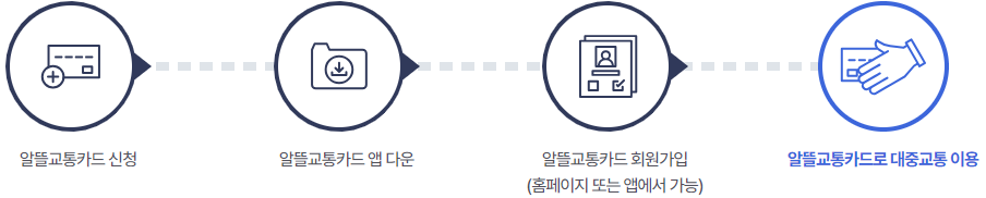 - 카드를 받은 후 알뜰교통카드 앱을 다운한 뒤 회원가입을 해야 합니다. 주소지를 확인하는데, 알뜰교통카드 사업에 참여 중인 지자체 지역 주민이면 가능합니다.