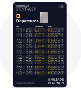 1,000원당 스카이패스 1 마일리지 추가적립 스카이패스마일리지 1,000원당 1마일리지 추가적립 (삼성카드 MILEAGE PLATINUM) 서비스안내 백화점·주유·커피·편의점·택시 이용금액 1,000원당 스카이패스