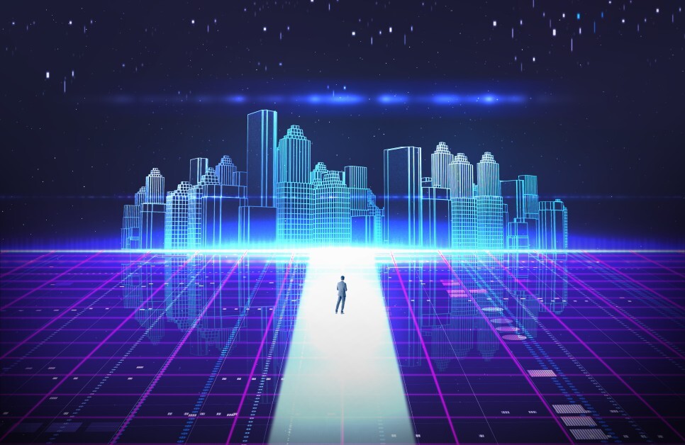 '메타버스'라는 용어는 물리적 현실과 가상 현실이 융합되어 만들어지는 집단적인 가상 공유 공간을 의미한다. 증강현실(AR), 가상현실(VR), 인터넷 등 몰입형 기술이 융합된 디지털 세상이다. 메타버스에서 사용자는 마치 동일한 물리적 환경의 일부인 것처럼 서로 및 디지털 요소와 상호 작용할 수 있습니다.